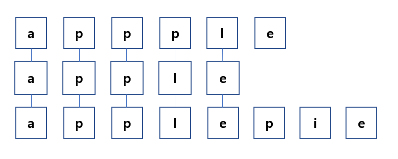 예를 들어서) apple appple applepie 라는 String이 존재할 경우, 각각의 인덱스를 순차적으로 탐색합니다.