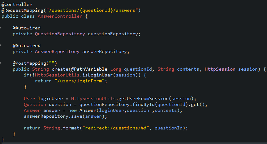 - (question과 answer가 종속 관계일때, RequestMapping을 위와 같이 설정 추천)