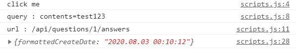 정확한 출력 확인 방법 : 개발자 도구 > console에 값이 전달되는지를 확인하기